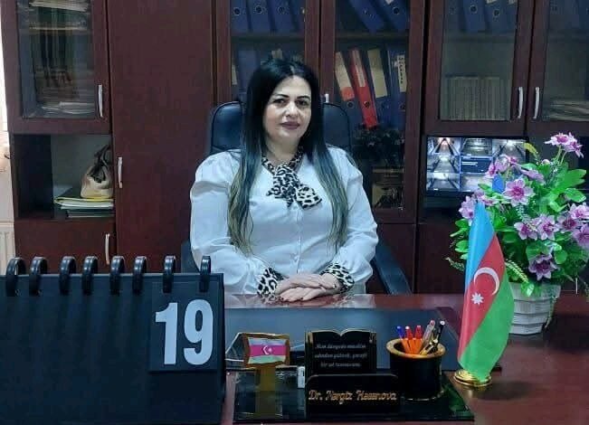 Nərgiz Həsənova: Bərdə rayon E.Əsədov adına Türkmən kənd tam orta məktəbinin direktoru.