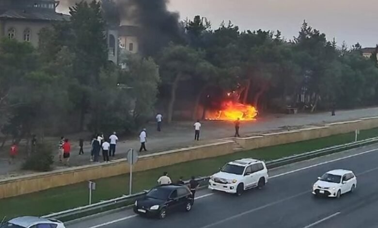 Aeroport yolunda avtomobil yanır – Sıxlıq var