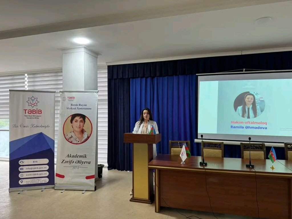 Tədbirdə tibb müəssisəsinin direktoru Vüsal Məmmədov, müavinlər, şöbə və bölmə müdirləri, baş və böyük tibb bacıları, eləcə də müxtəlif ixtisaslardan olan tibb personalı iştirak edib.Tədbirin açılışı zamanı Azərbaycan Respublikasının Dövlət Himni səsləndirilib, torpaqlarımızın ərazi bütövlüyü uğrunda canlarından keçən şəhidlərin və akademik Zərifə xanım Əliyevanın əziz xatirəsi bir dəqiqəlik sükutla yad edilib.Tədbir zamanı Vüsal Məmmədov çıxış edərək oftalmologiya elminə böyük töhfələr vermiş akademik Zərifə xanım Əliyevanın zəngin elmi irsindən və fəaliyyətinin müxtəlif dövrlərindən bəhs edib. Bildirilib ki, bu gün də onun elmi araşdırmaları və əldə etdiyi nailiyyətlər akademikin uzaqgörənliyini və böyük hədəflərə nail olduğunu bir daha sübut edir. Diqqətə çatdırılıb ki, görkəmli oftalmoloq Zərifə Əliyevanın həyat fəlsəfəsi və şəxsiyyəti bu gün müasir Azərbaycan gəncliyi üçün örnəkdir. Azərbaycan xalqına xas müsbət keyfiyyətlər və ali dəyərlər Zərifə Əliyevanın şəxsiyyətində cəmlənib.Daha sonra həkim-oftalmoloq Ramilə Əhmədova çıxış edərək bildirib ki, Azərbaycanda göz xəstəlikləri, o cümlədən traxoma geniş yayılmışdı. İnsanları bu xəstəlikdən xilas etmək, səmərəli müalicə metodlarını və profilaktik tədbirləri işləyib hazırlamaq zəruri idi. Zərifə Əliyeva məhz belə bir dövrdə Moskvadan Vətənə qayıdaraq 1949-cu ildə Azərbaycan Elmi-Tədqiqat Göz Xəstəlikləri İnstitutunda elmi işçi vəzifəsində çalışmağa başlayıb və elmi fəaliyyətinin ilkin mərhələsini traxomanın müalicəsinə həsr edib. O, bu xəstəliyin geniş yayıldığı rayonlara gedir, göz həkimlərinə mühazirələr oxuyur, əhali arasında maarifləndirici söhbətlər aparırdı. Çox keçmədən Zərifə xanım traxoma xəstəliyinin başlanğıc dövründə sintomisinin tətbiqində uğurlu nəticələr əldə edib.Tədbirin sonunda videoçarx nümayiş olunub.Daha sonra Bərdə şəhərində yerləşən Akademik Zərifə Əliyeva adına texniki fənlər təmayüllü liseydə tədbir keçirilib.#BərdəRayonMərkəziXəstəxanası