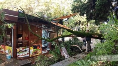 İsmayıllıda güclü külək ağacı kafenin üzərinə AŞIRDI – FOTOLAR