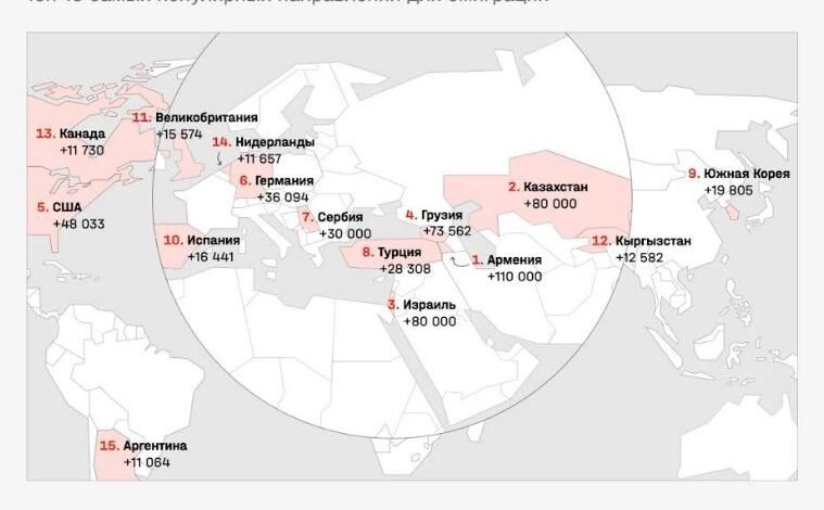Qazaxıstan rusların son üç ildə ən çox məskunlaşdıqları ölkələr sırasında ilk üçlükdə yer alır. Bu ölkəyə birdəfəlik köçənlərlə bağlı rəsmi statitistika açıqlanmayıb, amma müharibədən sonra sərhədi yüz minlərlə rusiyalı keçib.