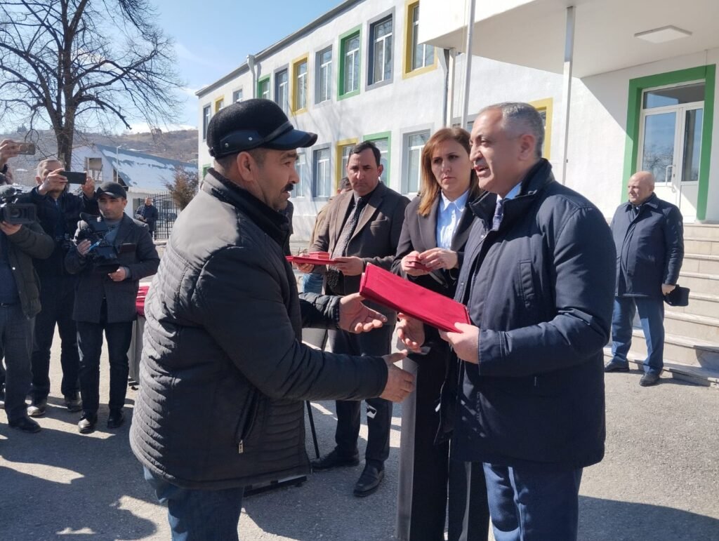 Sonda kəndə köç edən ailələr mənzillərini təhvil alıb və öz evlərində məskunlaşıblar.