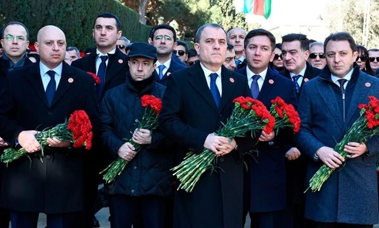 Azərbaycanın xarici işlər naziri Ceyhun Bayramov və nazirliyin heyəti 20 Yanvar – Ümumxalq Hüzn Günü münasibətilə Şəhidlər xiyabanını ziyarət edib.