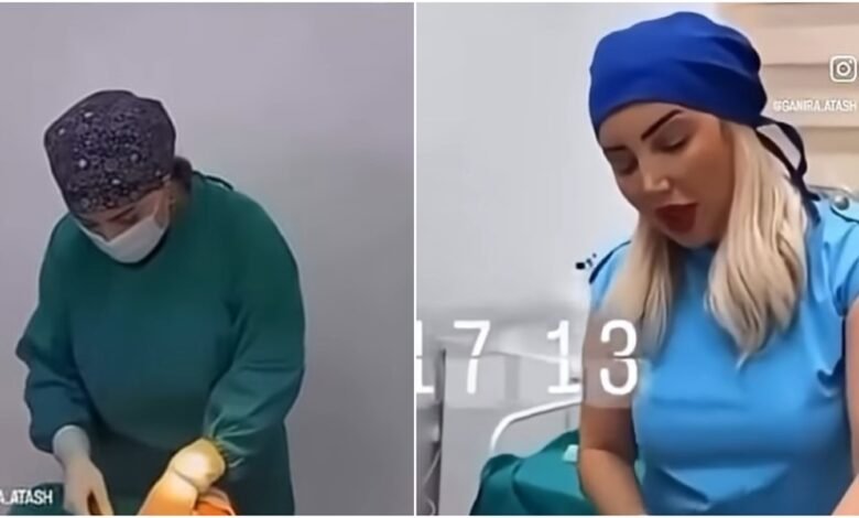 Belə ki, paylaşılan videoda onun klinik şəraitdə, tibbi formada və əlcəkdə müxtəlif müdaxilələr etdiyi görünür.