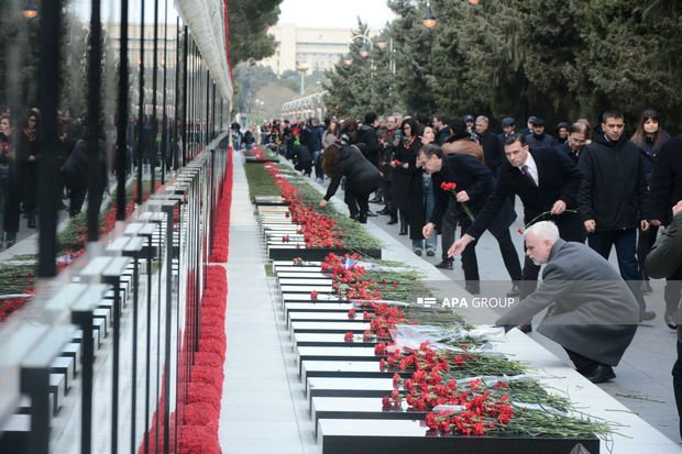 APA xəbər verir ki, onlar Azərbaycanın müstəqilliyi və ərazi bütövlüyü uğrunda canlarından keçmiş şəhidlərin xatirəsini hörmət və ehtiramla yad edib, məzarları üzərinə qərənfillər düzüblər.
