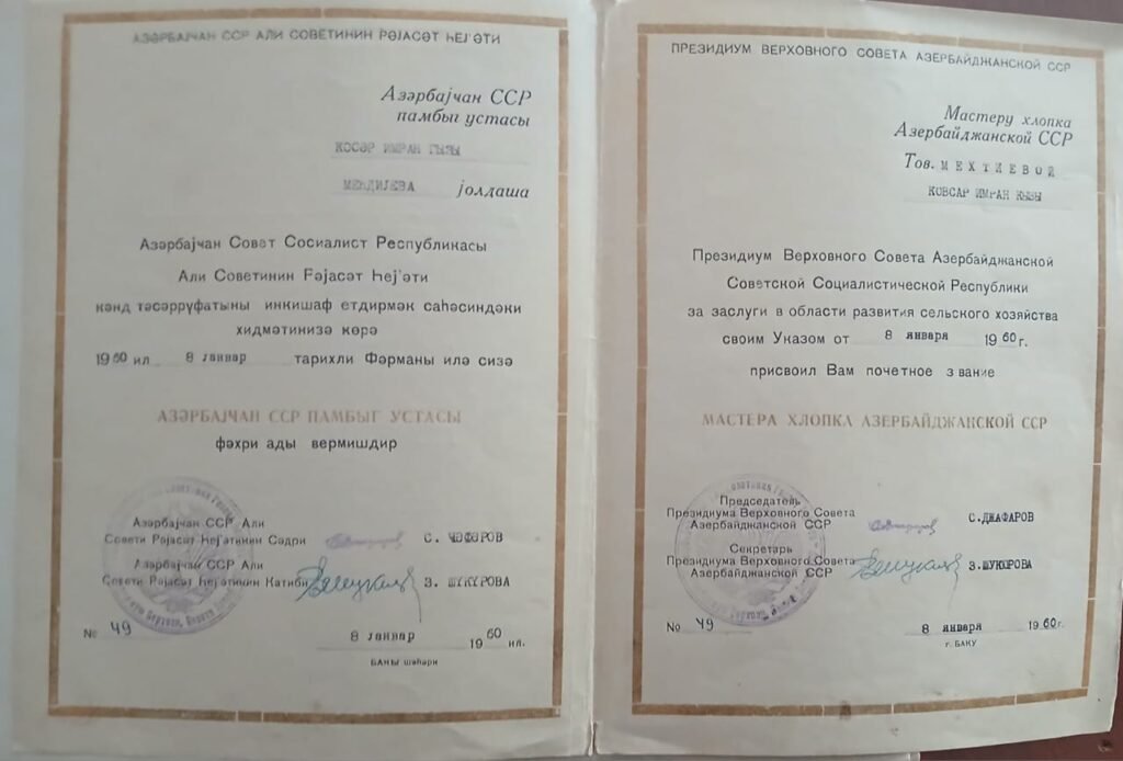 Səmədovanın fırçasının məhsulu olan portret isə Moskvada Kənd Təsərrüfatı Nailiyyətləri Sərgisində qızıl fondda saxlanılır.