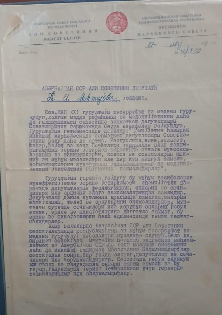 1960- cı ildə Az. SSR Ali Sovetinin deputatı seçilmişdir.
