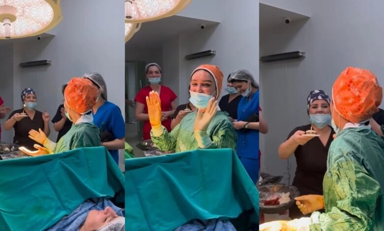 Görüntülərdən məlum olur ki, “German Hospital”ın cərrah mama-ginekoloqu Ləman Əliyeva əməliyyat zamanı iş yoldaşları tərəfindən “sürpriz”lə qarşılaşıb.