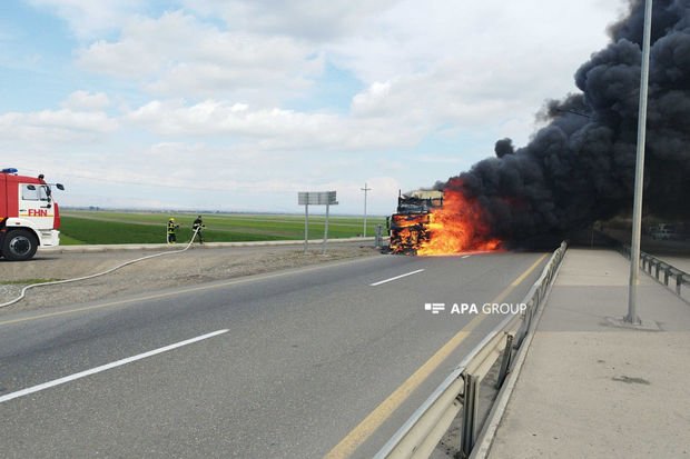 Yanğın söndürülüb, yük maşınının qalan hissəsi yanğından mühafizə edilib.