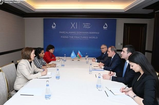 Azərbaycan xarici işlər naziri Ceyhun Bayramov XI Qlobal Bakı Forumunda iştirak məqsədilə ölkəmizdə səfərdə olan BMT-nin Qaçqınlar üzrə Ali Komissarının müdafiə məsələləri üzrə köməkçisi Ruven Menikdivela ilə görüşüb.