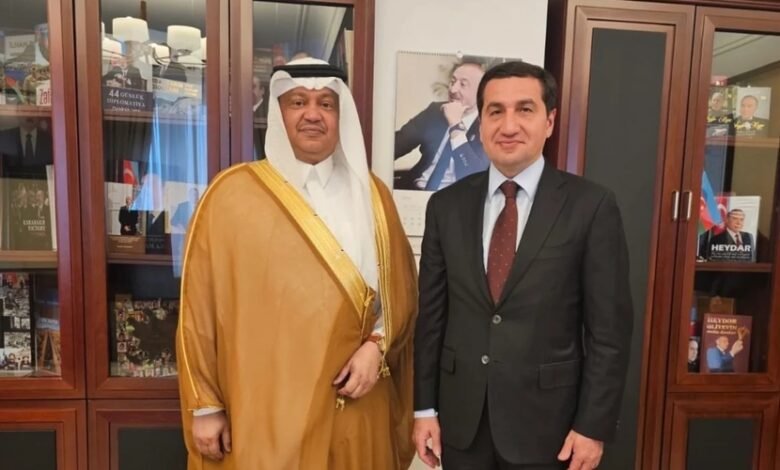 “İssam bin Saleh əl-Cuteyli Azərbaycan Prezident Administrasiyasının Xarici siyasət məsələləri şöbəsinin müdiri Hikmət Hacıyev ilə görüşüb”, – paylaşımda bildirilib və əlavə olunub ki, söhbət zamanı qarşılıqlı maraq doğuran mövzular müzakirə edilib.