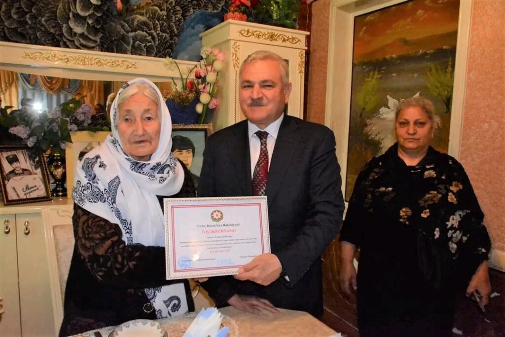 İcra başçısı şəhid anası Solmaz Cəfərovanı 85 illik yubileyi münasibəti ilə təbrik edib