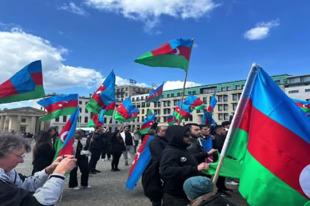 Berlində yaşayan azərbaycanlılar Prezident İlham Əliyev rəsmi şəxslərlə görüş üçün gəldiyi əraziyə toplaşaraq, dövlət başçısının kortejini qarşılayıblar.