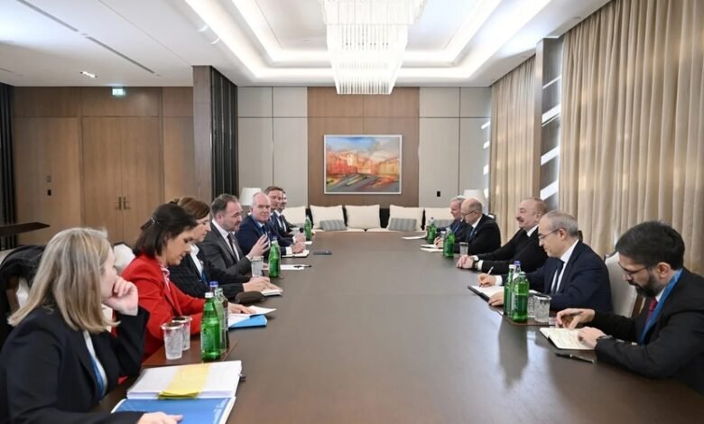 Dövlət başçısı Avropa İttifaqının xarici işlər və təhlükəsizlik siyasəti üzrə ali nümayəndəsi, Avropa Komissiyasının vitse-prezidenti Kaya Kallasın və Avropa İttifaqının Genişlənmə üzrə komissarı Marta Kosun ötən il Azərbaycana səfərlərinə toxunaraq, heyətlərimizin fəal işləməsini enerji və bağlılıq məsələlərində əməkdaşlığı dərinləşdirmək üçün hər iki tərəfdə olan iradənin göstəricisi kimi qiymətləndirib.