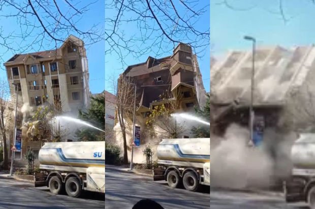 İstanbulda altımərtəbəli bina çökdü: Küçənin ortasına aşdı – VİDEO