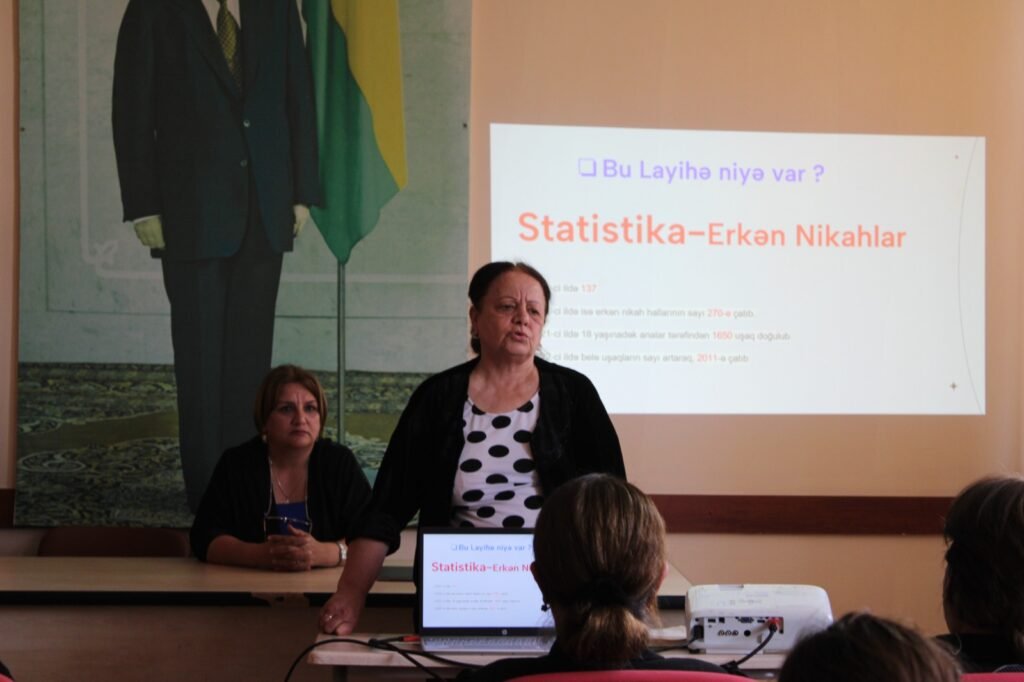 Layihə çərçivəsində Bərdənin kəndlərində məktəbli qızlarla, onların müəllimləri və valideynlərlə, eyni zamanda yerli icra nümayəndəlikləri və bələdiyyələrlə maarifləndirici görüşlər keçirilib və erkən nikahların səbəbləri, fəsadları və həlli yolları müzakirə edilib. Keçirilən görüşlərdə layihə komandası ilə yanaşı, psixoloq, ginekoloq və həkim, polis, eyni zamanda, erkən nikahların qurbanı olmuş qadınlar, karyera və şəxsi həyatında uğur qazanmış qadınlar da iştirak ediblər.