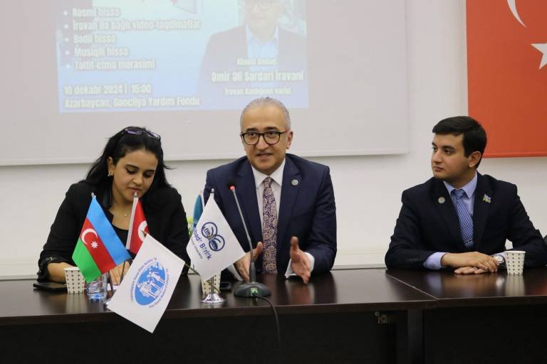 “Əbədi Birlik” Gənclər İctimai Birliyinin təşkilatçılığı, “Vətəndaşların Sosial Rifahı Naminə” İctimai Birliyinin tərəfdaşlığı ilə, “İrəvan – Şah Damarımız!” adlı tədbir keçirilib. Qerbiazerbaycanaz.tv media xəbər verir ki, bu tədbirə dövlət nümayəndələri, ictimai birliklərin rəhbərləri, gənclər və digər qonaqlar qatılıb. Tədbir Azərbaycan Respublikasının dövlət himninin səslənməsi ilə başlayıb. Daha sonra Azərbaycanın ərazi bütövlüyü və suverenliyi uğrunda həlak olan şəhidlərin və Ümummilli Lider Heydər Əliyevin əziz xatirəsi bir dəqiqəlik sükutla yad edilib.Tədbiri açıq elan edən “Əbədi Birlik” Gənclər İctimai Birliyinin sədri, beynəlxalq hüquq müdafiəçisi Şahin Əliyev İrəvanın tarixindən və Azərbaycanın milli yaddaşında oynadığı roldan danışıb. Daha sonra, “Vətəndaşların Sosial Rifahı Naminə” İctimai Birliyinin sədri İradə Rizazadə, Qərbi Azərbaycan İcmasının üzvü, Qafan rayon Gənclər Şurasının departament sədri Ayşə Abbaslı çıxış ediblər.Tədbirin bədii hissəsində qiraətçilər Zəhra Nəcəfzadə və Mələk Şairova İrəvan mövzusunda şeirlər səsləndiriblər. Eyni zamanda, Əmir Əli Sərdari İrəvaninin həyatına və fəaliyyətinə həsr olunmuş video-çarx nümayiş olunub. Tədbirdə Həzrət Əzizlinin ifasında “Bayatı Şiraz” muğamı və İrəvan mövzusunda müxtəlif ifalar dinlənilib.Xüsusi qonaqlardan biri olan Əmir Əli Sərdari İrəvani çıxışı zamanı İrəvan xanlığının tarixi və onun Azərbaycan üçün əhəmiyyətini vurğulayıb. Tədbirdə, həmçinin, Ümummilli Lider Heydər Əliyevin qohumu, “Modern Ailə və İnkişaf” İctimai Birliyinin sədri Zərifə Quliyeva və televiziya aparıcısı, xeyriyyəçi və ictimai xadim Hacı Nuran Huseynov çıxış edərək, mövzu ətrafında fikirlərini bölüşüblər.Tədbirin sonunda fəal könüllülərə və xüsusi qonaqlara təşəkkürnamələr təqdim olunub. Şahin Əliyev Əmir Əli Sərdari İrəvaniyə “Ulu Öndər” diplomu təqdim edib. “İrəvan – Şah Damarımız!” adlı tədbir iştirakçılarda böyük vətən sevgisi oyadıb və milli birliyimizin önəmini bir daha ortaya qoyub.Təşkilatçılar tədbir iştirakçılarına minnətdarlıqlarını bildirərək, İrəvanın Azərbaycanın tarixi irsi olaraq, daim xatirələrdə yaşayacağını xüsusi olaraq vurğulayıblar. Sonda xatirə şəkli çəkilib.