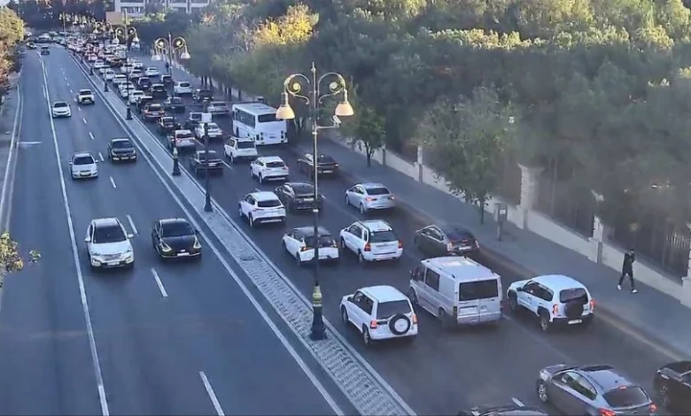 Bakının bir sıra yollarında nəqliyyatın sıxlığı müşahidə olunur.