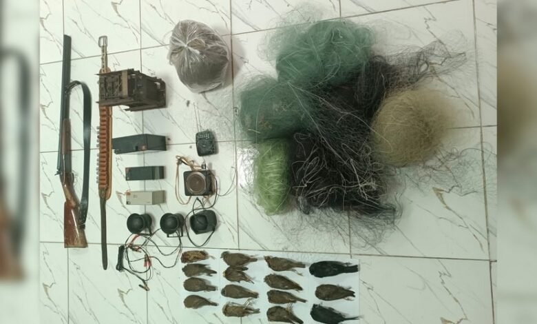 Onlardan müvafiq sənədləri olmayan bir ədəd ov tüfəngi, çöl quşlarını havada ovlamaq üçün quraşdırılmış çox sayda sintetik torlar, ov zamanı istifadə olunan digər alətlər və qanunsuz olaraq ovlanan çöl quşları aşkar edilərək götürülüb.