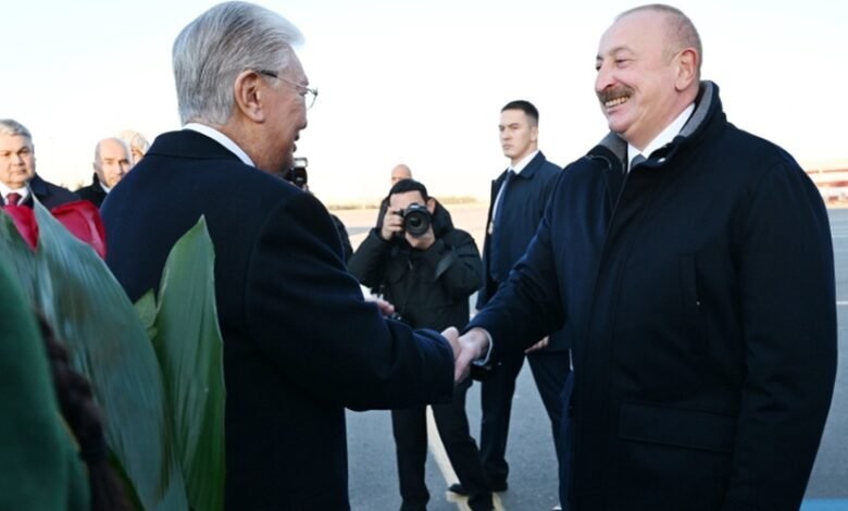 Dövlət başçısını Qazaxıstan Prezidenti Kasım-Jomart Tokayev qarşılayıb.