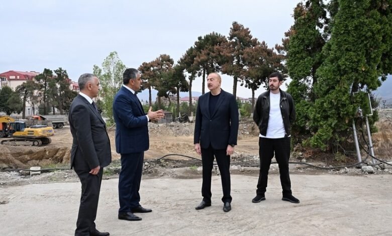 Azərbaycan Respublikasının Prezidenti İlham Əliyev sentyabrın 19-da Xankəndi şəhərinin Zəfər meydanında Konqres Mərkəzinin tikintisi ilə tanış olub.