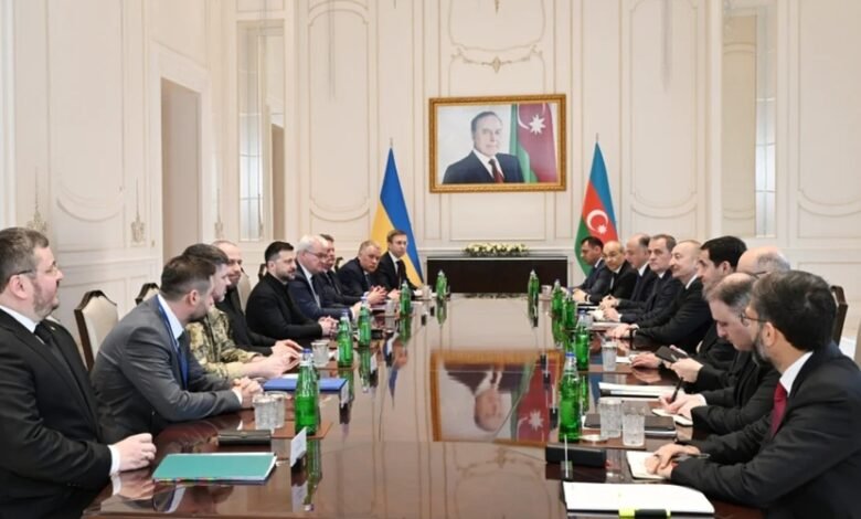 Qəbələdə Azərbaycan Prezidenti İlham Əliyevin Ukrayna Prezidenti Volodimir Zelenski ilə geniş tərkibdə görüşü keçirilir.