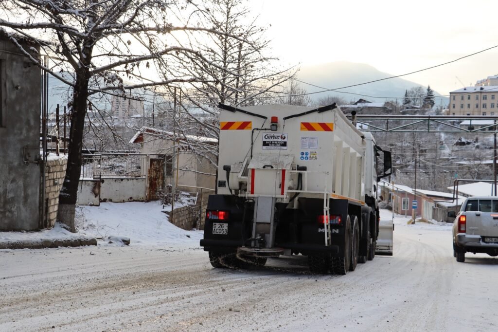 Xankəndidə 2 gündür ki, yağan və ötən axşamdan etibarən yollarda nəqliyyatın hərəkətini çətinləşdirən qarın təmizlənməsi üçün işlər görülür. Səhər saatlarından etibarənXankəndi şəhərində, Ağdərə və Xocalı rayonlarında Bərpa, Tikinti və İdarəetmə Xidməti publik hüquqi şəxsin müvafiq strukturu prosesə cəlb olunub.Yollarda piyadaların və avtomobillərin hərəkətinin təhlükəsizliyinin təmin edilməsi məqsədilə tədbirlərə başlanıb. Yollara duz və qum səpilib.Şəhərin küçə və prospektlərində, səkilərdə qarın təmizlənməsi işlərinə xeyli sayda texnika və işci qüvvəsi cəlb edilib.