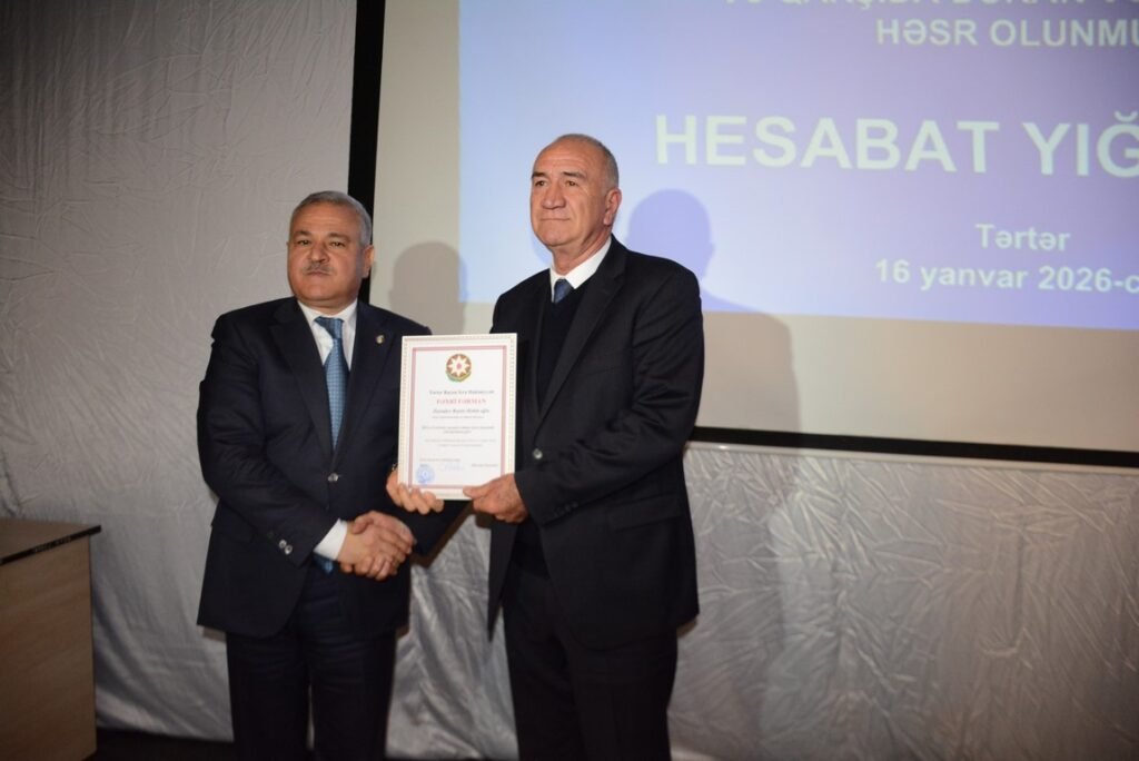 Qerbiazerbaycanaz.tv media xəbər verir ki, Hesabat yığıncağında Tərtər Rayon İcra Hakimiyyətinin başçısı Müstəqim Məmmədov, Azərbaycan Respublikası Prezidentinin Administrasiyasının Ərazi-təşkilat məsələləri şöbəsinin Regionların sosial-iqtisadi inkişafının təhlili sektorunun müdiri Müşfiq Osmanov, hüquq mühafizə orqanlarının rəhbərləri, RİH Başçısı yanında Şuranın üzvləri, şəhid ailələri, qazilər, idarə, müəssisə, təşkilat rəhbərləri, inzibati ərazi dairələri üzrə nümayəndələr və bələdiyyə sədrləri iştirak ediblər.Tədbir iştirakçıları əvvəlcə Ümummilli Lider Heydər Əliyevin Mərkəzi Meydanda ucaldılmış abidəsini ziyarət edib, önünə gül dəstələri düzərək xatirəsini ehtiramla anıblar. Sonra tədbir rayon Mədəniyyət Mərkəzində davam etdirilib. Tədbir iştirakçıları öncə mərkəzin foyesində rayonda istehsal edilən məhsulların sərgisinə baxıblar.Yığıncaqda Tərtər Rayon İcra Hakimiyyətinin başçısı Müstəqim Məmmədov hesabat məruzəsi ilə çıxış edib. Rayon rəhbəri 2026-cı ilin tərtərlilər üçün yaddaqalan tarixi hadisə ilə başladığını, yanvar ayının 13-də Azərbaycan Respublikasının Prezidenti cənab İlham Əliyevin 48 il öncə Ümummilli Liderin açılışını etdiyi Tərtər Eletromexanika zavodunda aparılan geniş yenidənqurma işlərindən sonra zavodun açılışını etdiyini bildirmiş, dövlət başçısının rayonda yerləşən hərbi təyinatlı sənaye obyektinə göstərdiyi bu diqqət və qayğının rayon ictimaiyyətinin əhval ruhiyyəsini daha da yüksəltdiyini, insanlarda sabaha inamı, görülən işlərə güvəni və yeni inkişaf mərhələsinə keçid əzmini daha gücləndirdiyini qeyd etmişdir.2025-ci ilin də uğurlu keçdiyini qeyd edən icra başçısı döyüş meydanında Şanlı Qələbə qazanmış ölkəmizin 2025-cı ilin avqust ayında siyasi müstəvidə də müharibəyə son qoyduğunu, Amerika ilə Azərbaycan arasında strateji işçi qrupunun yaradılması sənədinin imzalandığını, Zəngəzur dəhlizinin açılmasının artıq Amerika Prezidenti tərəfindən də təsdiqləndiyini qeyd etmiş, ölkə rəhbərinin həyata keçirdiyi iri miqyaslı davamlı layihələr nəticəsində Azərbaycan dövlətinin beynəlxalq arenada siyasi və iqtisadi qüdrətinin daha da artdığını, 44 günlük Şanlı Vətən müharibəsi və 2023-cü ildə həyata keçirilən antiterror əməliyyatları nəticəsində azad edilmiş torpaqlarımızda aparılan genişmiqyaslı tikinti, bərpa və yenidənqurma işlərinin, “Böyük qayıdış”ın insanlar tərəfindən yüksək əhval-ruhiyyə ilə qarşılandığını qeyd etmiş, rayonda sosial-iqtisadi, aqrar, tikinti-quruculuq və sair sahələrdə 2025-ci ildə əldə olunmuş nəticələrdən danışmışdır.İclasda çıxış edən Prezident Administrasiyasının Ərazi-təşkilat məsələləri şöbəsinin sektor müdiri Müşfiq Osmanov Azərbaycan Respublikasının Prezidenti cənab İlham Əliyevin rəhbərliyi ilə ölkədə gedən hərtərəfli və sürətli tərəqqidən danışaraq 2025-ci ildə islahatların yeni mərhələsinə qədəm qoyulduğunu və məqsədyönlü şəkildə həyata keçirilməsi üçün çox ciddi addımlar atıldığını bildirib. Eyni zamanda Tərtər rayonunda həyata keçirilən abadlıq-quruculuq işlərinin, sosial infrastrukturun yenilənməsi, yeni iş yerlərinin açılmasının cənab Prezidentin siyasətinin real nəticəsi olduğunu vurğulayıb.Məruzə ətrafında Tərtər DAİM-in direktoru Mehman Babayev, Tərtər və Ağdərə rayonları üzrə Təhsil Sektorunun müdiri Oktay Sarıkişiyev, Tərtər Elektrik Şəbəkəsinin rəisi Vilayət Qafarov, Qarabağ Regional Maliyyə İdarəsinin rəisi Əli Əlizadə, Tərtər Su Meliorasiya Sistemlərinin İstismarı İdarəsinin rəisi Murad Zeynalov və “Prime Cotton” MMC-nin Qarabağ Regional Mərkəzinin direktoru Amil Rəşidov çıxış ediblər. Çıxışçılar 2025-ci ildə rayonumuzun bütün sahələrdə əldə etdiyi nailiyyətlər və cari ildə həlli vacib məsələlər barədə fikir və təkliflərini bildirdilər. Sonda cari ilin hədəflərini əks etdirən qərar qəbul olunaraq, toplantı iştirakçıları adından Azərbaycan Respublikasının Prezidenti cənab İlham Əliyevə ünvanlanan müraciət diqqətə çatdırılıb. Rayonun ictimai-siyasi, sosial-iqtisadi və mədəni həyatında fərqlənən şəxslərə və xidməti fəaliyyətlərinin yerinə yetirilməsində müsbət nəticələr göstərən bir qrup əməkdaşlara rayon İcra Hakimiyyəti Başçısının Fəxri Fərmanları təqdim edilib.